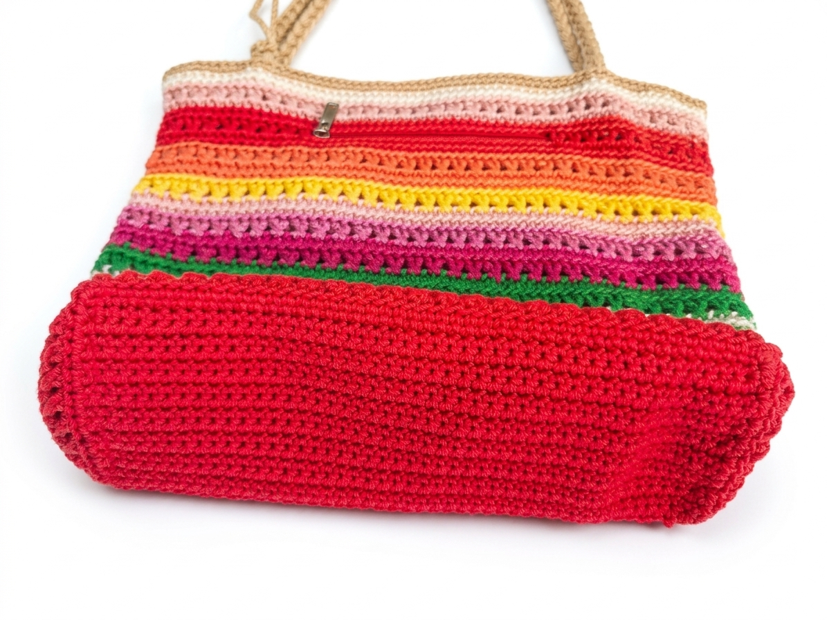 Durable Bottom: The base of the bag is crafted with a dense, solid red crochet stitch, ensuring it holds its shape and stands up to daily wear.