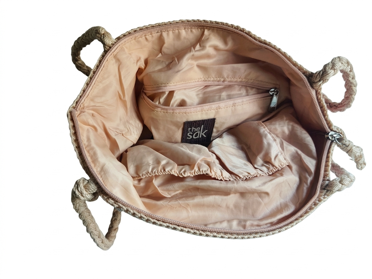 Signature Hardware: Includes the classic “The Sak” silver-tone metal logo charm dangling from the strap base.