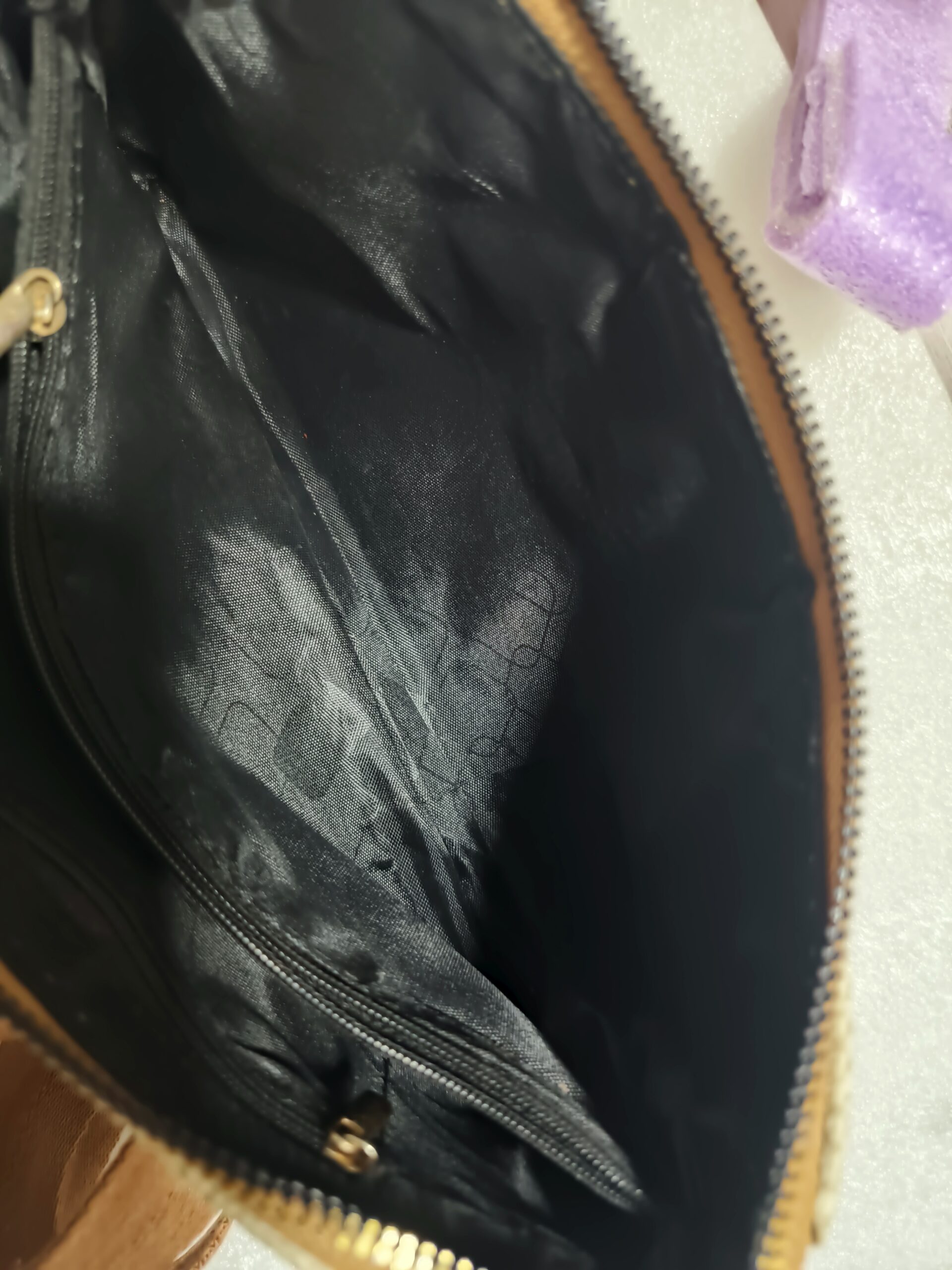 ​Interior: The inside is lined with a sleek black fabric and includes an additional internal zippered pocket for organizing smaller essentials like keys or cards.
