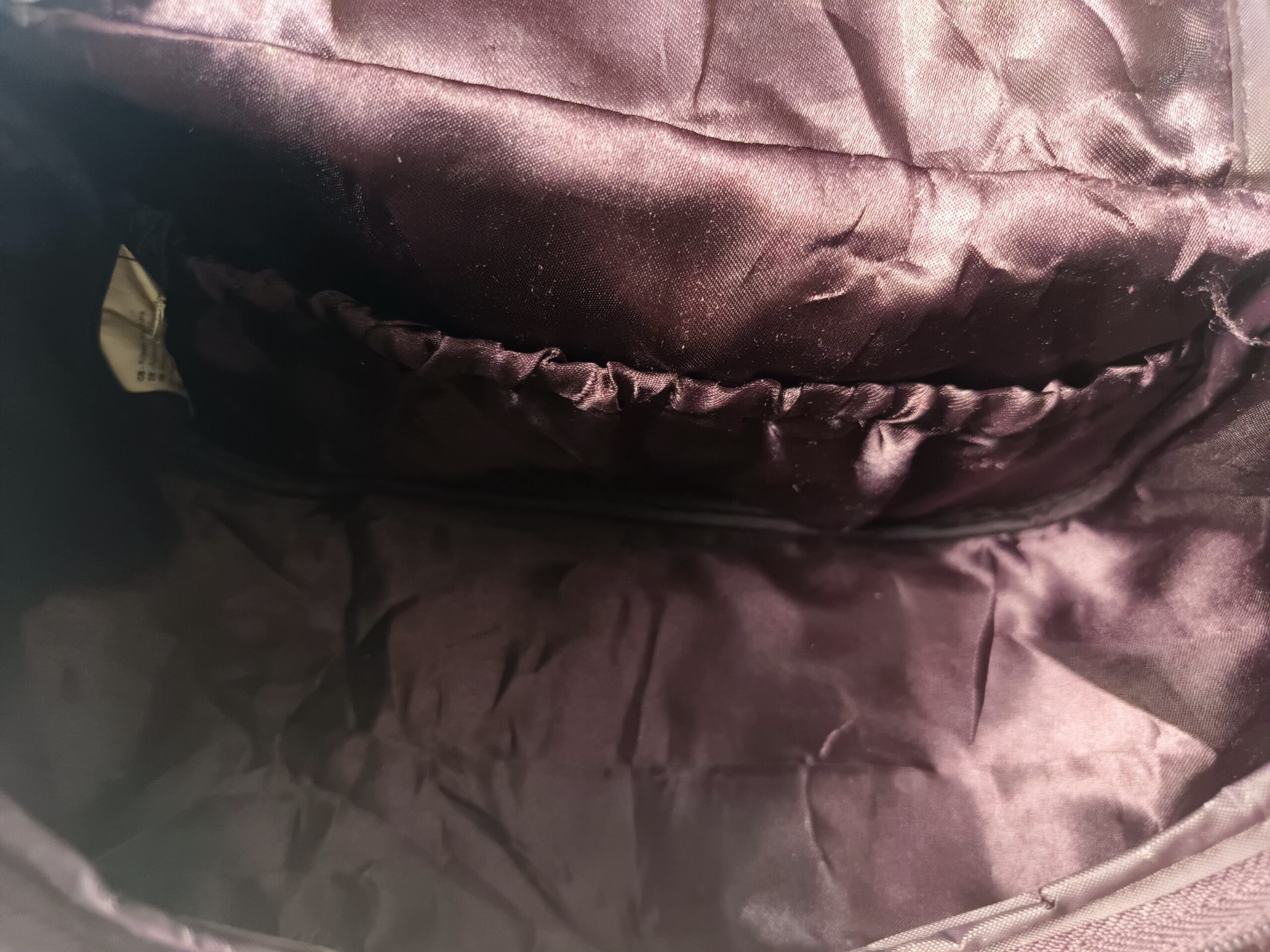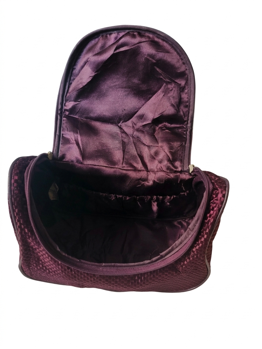 Interior Layout: * The main compartment is spacious and lined with a smooth, matching satin-like fabric.